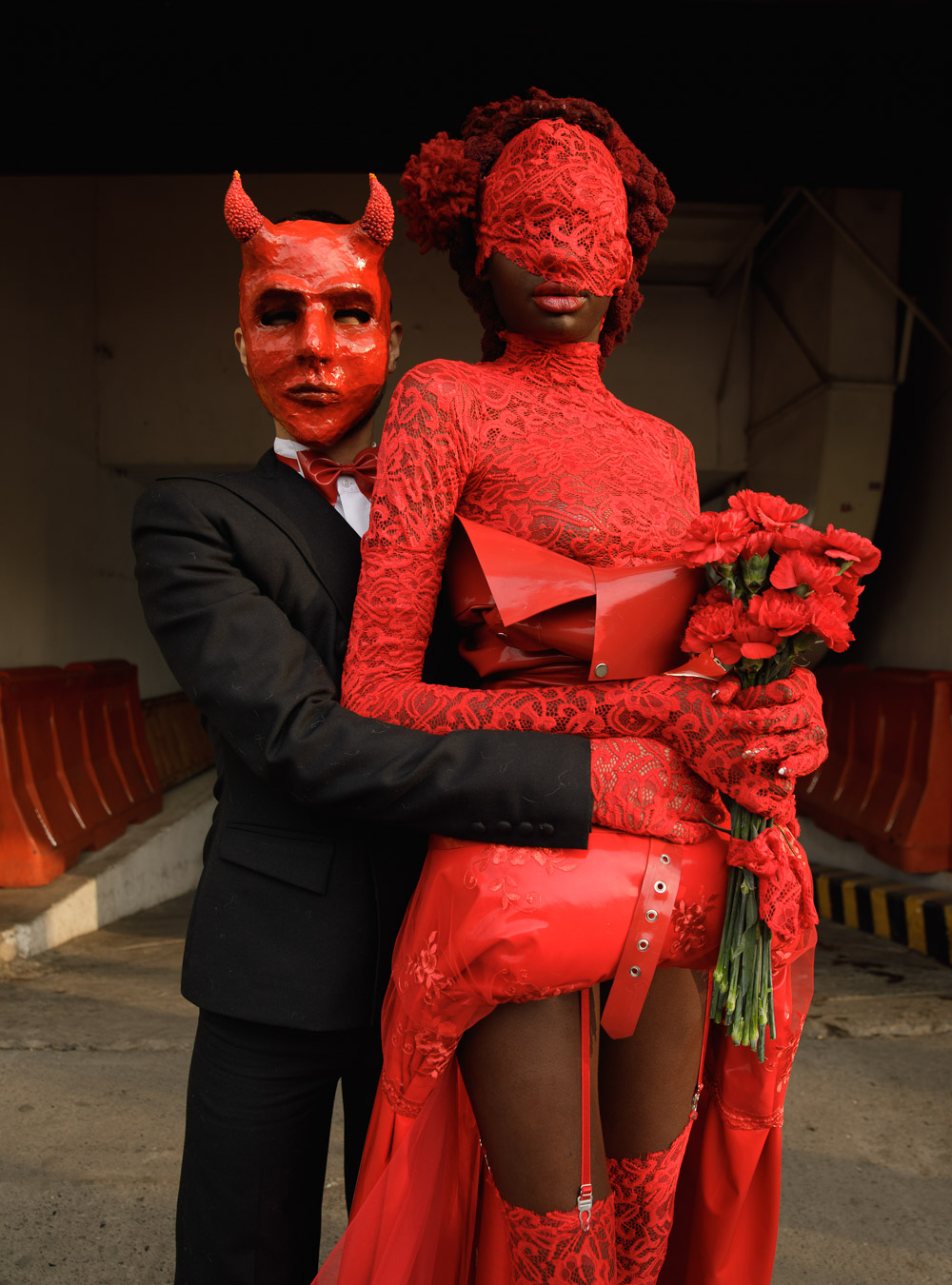 (L) corset SOREIL LINGERIE; (R) suit CHRISTO TRIANA; bowtie VIF COLLECTION